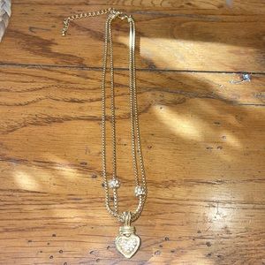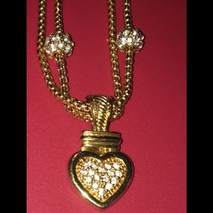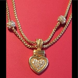 Vintage DBL Strand Necklace Crystal HEART pendant