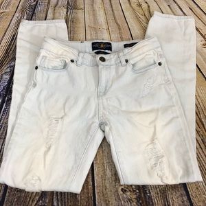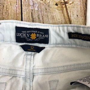 Girls size 12 Lucky Brand jeans with adjustable waistband. Light blue with distressed details. Measurements laid flat: