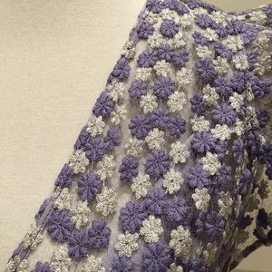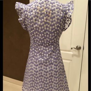 Michael Kors beautiful Lilac and silvery flower embroidered dress. Dress has lining underneath. It Has a V cut front. A-Line style dress, side zip on left side. Brand New never worn with tags. Size 4 .
