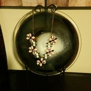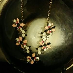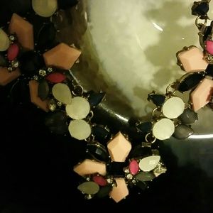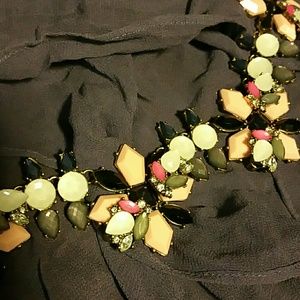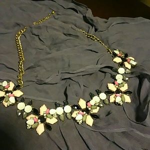 Gently worn good condition. Pink, black, white and gray stones set into burnished gold chain. 22 inches in length.
