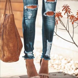 NEW! Distressed Medium Wash Denim, Frayed Ankle