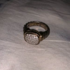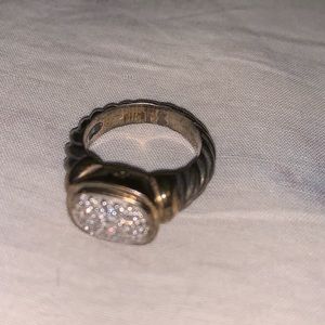 Needs some TLC (a good cleaning and polishing) but gorgeous, classic sterling silver, 18k gold & pave diamond ring. Fits my ring finger.