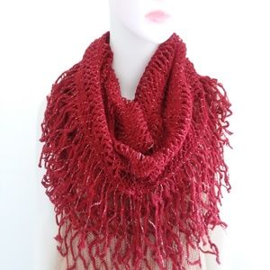 Fringe Infinity Scarf Burgundy with Silver Shimmer