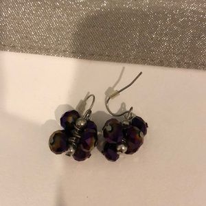 Three pairs of earrings! Gray beaded earrings, purple beaded earrings, gold iridescent earrings