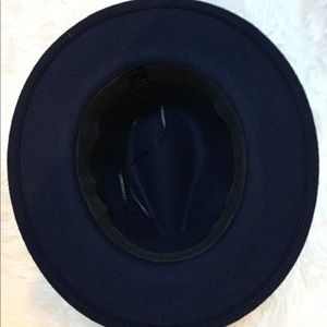Navy Faux Wool Fedora Felt Hat Wide Brim 57