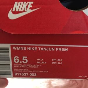 New with box Women’s Nike Tanjun Premium Running Shoes. Color-Black/Black Metallic Gold, Size 6.5M