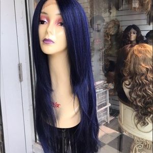 Blue wig Swisslace lacefront human hair blende 30+ inch Long use hot styling tools up too 390 lightly mist with water before applying heat for maximum results styling your new wig just like your own hair click my profile picture enter my closet all new wigs Alopecia Hairloss Chemo Ask I have your wig adjustable cap 3rd bottom Comb while wearing up in a ponytail I ship daily