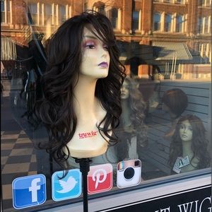 Wig Brown Freepart curly swisslace Lacefront wig human hair blende 24 inches adjustable cap wig combs inside use your hot styling tools up too 390 styling your new wig just like your own hair pull your own hair into a granny low bun in the nap of your neck welcome click my profile picture enter my closet all new wigs ready too ship daily don’t worry about color I have this in all colors I have this in a full lace I ship daily
