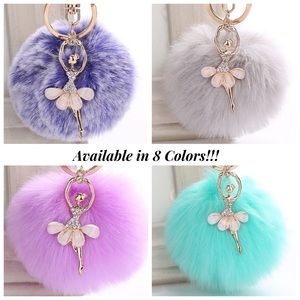 This fluffy blue Pom Pom has a beautiful ballet dancer charm. A great gift for a ballerina, or Dance Mom!