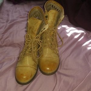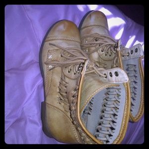 Super cute side crochet detail, they have this very cool color tan with a darker chestnut color all around like on tops of feet and back of heels, amazing condition
