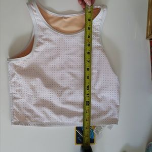 White mesh Valentina Midi crop top with built in bra, removable padding and full nude lining.