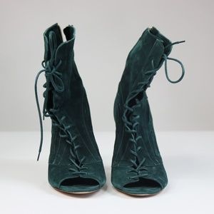 Jerome Dreyfuss Suede Peep-Toe Ankle Teal Lace Up Booties - Size 40