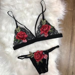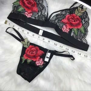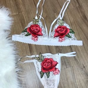 Featuring a cute flower embroidery, lace, elastic bands and adjustable straps.