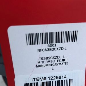 New Thermoball with tags size Large color on tag reads monument Grey matte