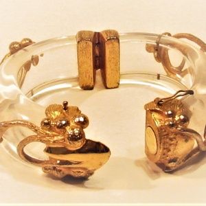 AUTHENTIC EARLY Vintage Lucite bracelet by Inna Cytrine with 22k gold plated vine and grapes design and magnetic closure .