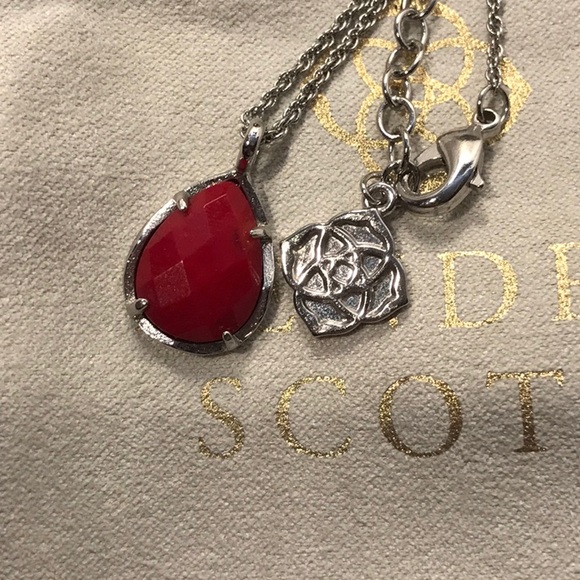 Kendra Scott silver and red Kiri necklace. Like new, never worn. Comes with duster bag. Look at our other listings for brands like Brighton & Kate Spade. Bundle for seller discount!