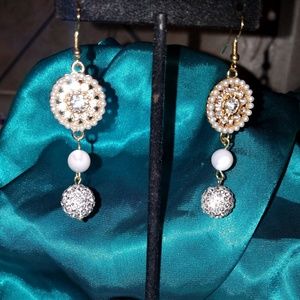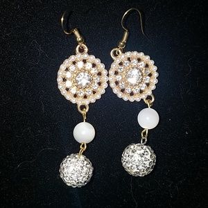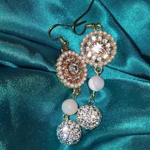 ❤️SOLD💕Pearl Crystal Disc Disco Ball Earrings