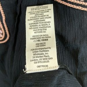 Boho-inspired lightweight cotton mini dress featuring contrast embroidery detailing.