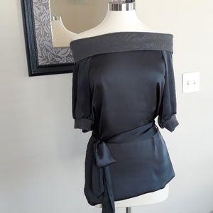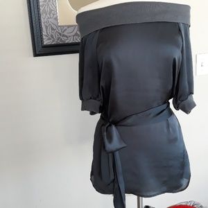 Charcoal gray off the shoulder blouse
