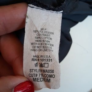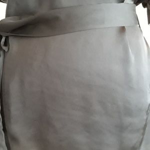 Can be worn as a cowl neck or off the shoulder. Silk like fabric ties beautifully at waist.