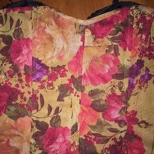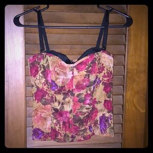 Floral print corset/bustier with attached black multi-way bra..