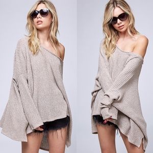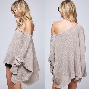 Ribbed loose fit long sleeve top that can be worn off shoulder.