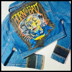 This jacket was handmade by one of my very close friends and incredibly talented and prolific designer Michel Berandi. This is his side punk project label called COTTON FEVER. This jacket is embellished with 100% vintage and hand selected patches etc..