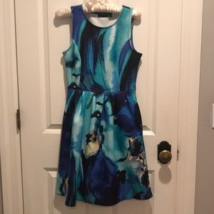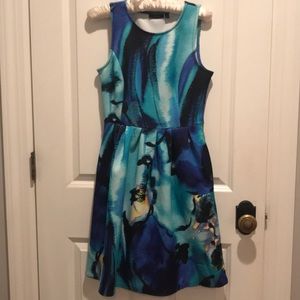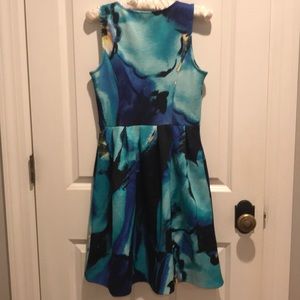It’s wrinkle resistant, the waistline is fitted and flared.