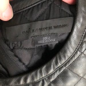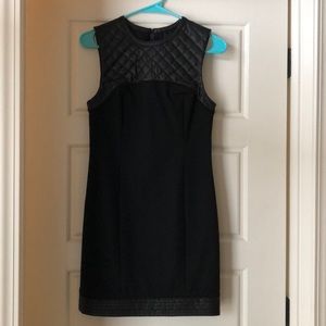 Alexander Wang Quilted Leather Yoke Mini Dress with leather trim hem and exposed back zipper in Size 2. This gorgeous dress features a genuine quilted calfskin leather yoke and thick leather trim at the hem. Double hook and eye and exposed zipper.