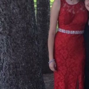 🎀Beautiful long red prom dress with slit on one side 🎀Only worn once 🎀No alterations done