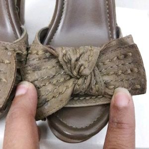Jessica Simpson Open Toe w/ Bow Platform Sandals Brown/Taupe Wooden Heel Size 6B