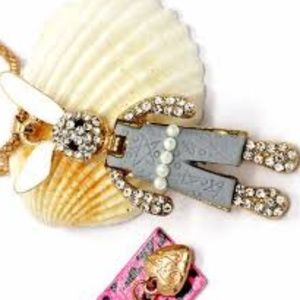 Brand new and never worn! Very pretty and cute. Give away or to keep! Rabbit is wearing a gray outfit with beads and the rabbit has crystal stones. This is a necklace and the chain is about 24 inches long.