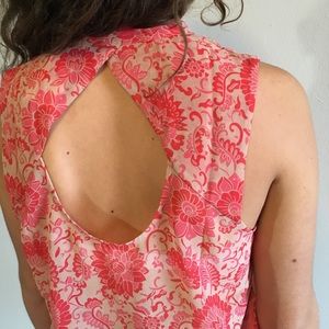 CAbi Floral Top Sleeveless Print Tank Pink Nude