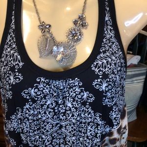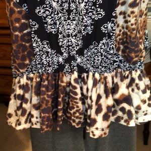NWOT. This top is a trendy little top that will go great with leggings or jeans. It features a delicate ruffle around the bottom of this same fabric as well as a racer back, and there are also zipper treatments on both sides of the front. Purchased at a local boutique