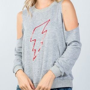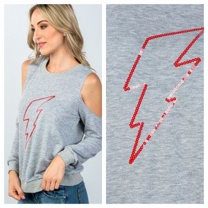 ❤Gray Cold Shoulder Sequin Lightning Bolt Top