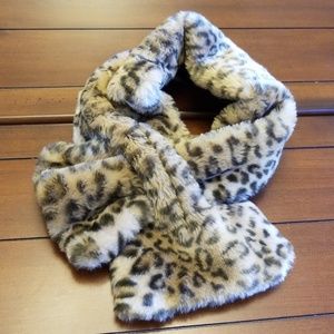 Super cute neck wrap with animal print. No tag noted. Hole for the other end to loop through t hold in place around neck. Measures 6.5"x32".