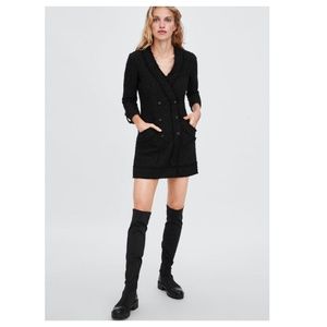 Long sleeve V-neck dress with metallic thread. Featuring front pockets, jewel buttons on the front, a lined interior and frayed trims. Invisible side zip fastening.