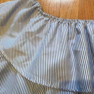 Blue Striped Off The Shoulder Ruffle Dress 👗
