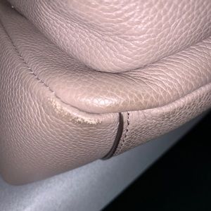 Used. Scratches at the bottom of the purse show in photo. Rare find. Color is more of a beige color. Photo taken with flash. In good condition.