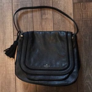 Black kate spade, over the shoulder, suede and leather combo with suede tassel, big flap with pockets inside. Used a handful of times, no wear or tear