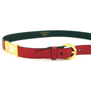 FERRAGAMO Gold Ring Red Leather Belt Women's 80/M