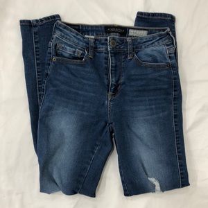 Very stretchy high rise and ankle length! Very comfortable in great condition! Skinny jeans.