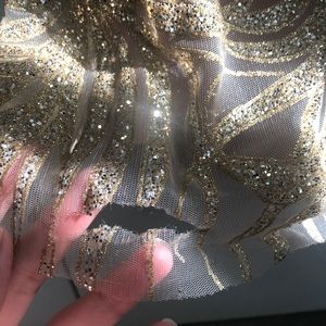 Mignon sleeveless peach and gold prom dress