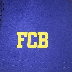 Short sleeve Blue Barcelona Shirt with the team logo on front of shirt Embroidered.