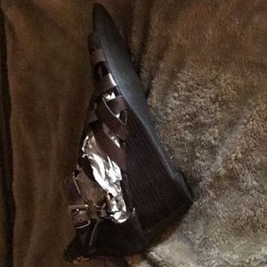 Brown wedge sandal double gold buckle on the side. Never used
