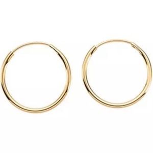 Very comfortable and lightweight, these are small gold plated endless hoop earrings. Surgical steel ear wires. Hoops measure approximately 1/2” in diameter. Perfect for all ages!