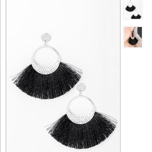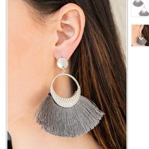 Bundle of 2 new fashionable and trendy tassel hoop like stud earrings. One black pair and one grey pair. They both have silver on them too. Beautiful fashion statement for a night out with friends, on a date, a party, or any other special event/occasion.