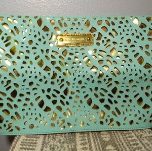 This clutch is in perfect condition. My friend got it for me from Norway 3 years ago, but I couldn't figure out what to wear it with so I have never used it.( Except as a decoration in my room) You can carry it around folded as I am showing in the first picture or you can unfold it and hold it the long way as shown in the other pictures.