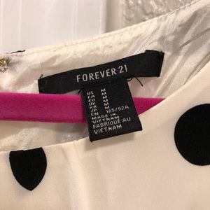 Super cute Forever 21 black & white polka dot sleeveless shift dress. Worn once. Has a small stain as pictured on back near the zipper. I have not attempted to remove, but will possibly come out with some TLC.