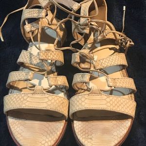 Comfortable and stylish with a faux snake skin pattern in a light tan. Perfect with jeans and maxi dresses.